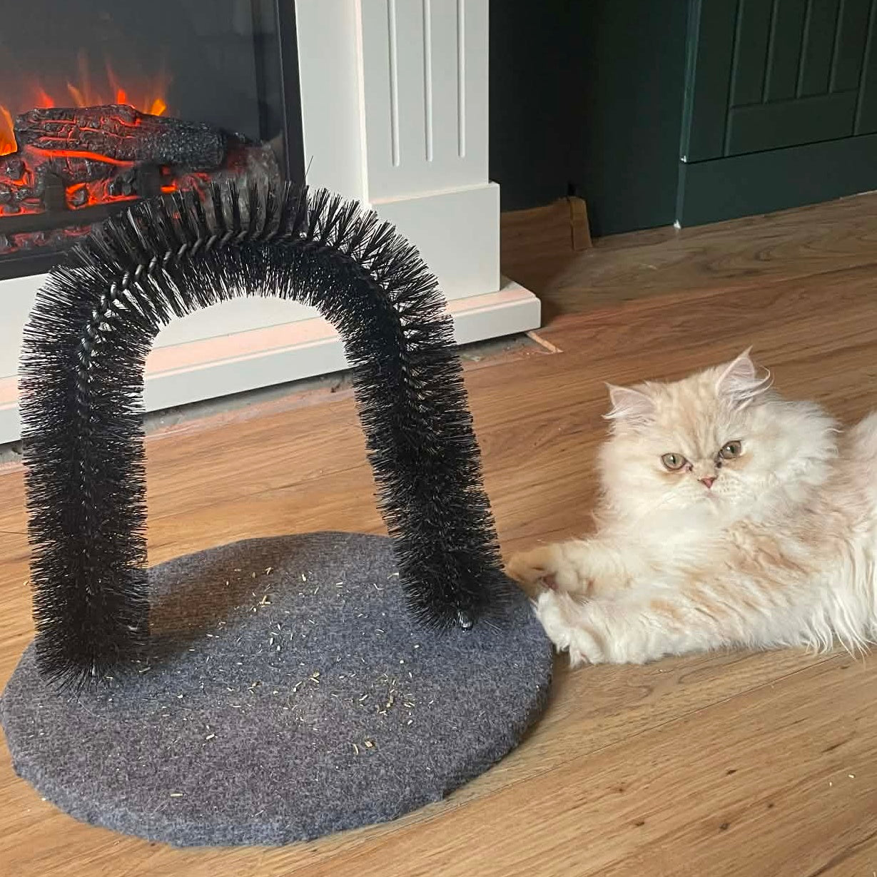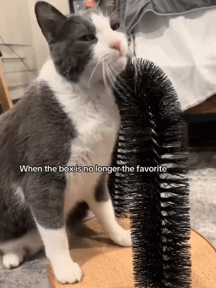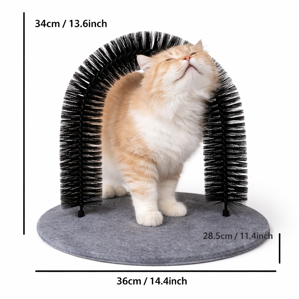 Designed to follow your cat’s natural rubbing instinct, helping remove loose fur without harsh brushing or pulling.